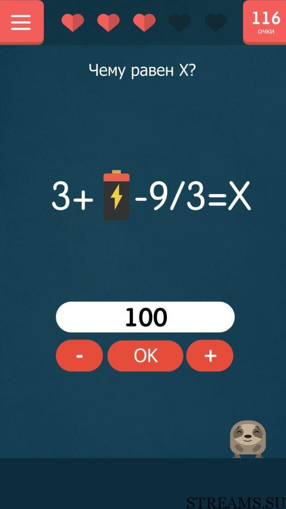 ОТВЕТ: Посмотрите сколько в процентах заряд вашей батареи на телефоне и введите это число в ответ, у меня это 100%