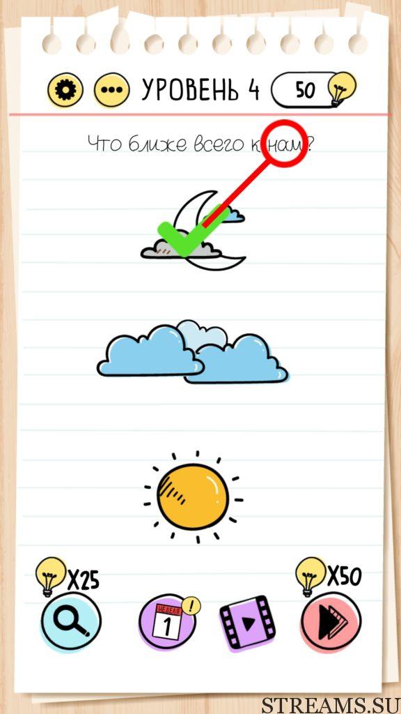 Что ближе всего к нам? Уровень 4 — Brain Test — Это самая популярная головоломка, в которой вам предстоит разгадывать непростые задачки. Нужно будет искать нестандартные решения. Название игры говорит само за себя (Тест мозга). С её помощью вы сможете повысить свой IQ, и интеллект. Иногда ответ может быть очень прост. Вы можете играть в компании друзей или родных. Брейн Тест, это отличный способ провести время с пользой и узнать насколько ты умный. Но если вы не можете решить один или несколько уровней, то воспользуйтесь подсказками с нашего сайта.