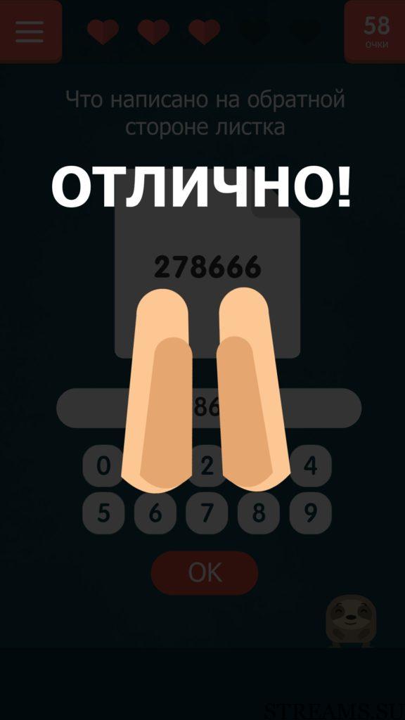 Что написано на обратной стороне листка? 25 уровень Каверзный тест (Tricky test) — игра от разработчиков студии NatGames. Если вам надоели наивные и простые задачки и головоломки, то эта игра определенно для вас! Нужно будет трясти, переворачивать, гладить свой телефон, чтобы пройти уровень. В описании игры написано, что 94% скачавших, не пройдут игру с первого раза. Чтобы исправить этот процент в меньшую сторону, мы предоставляем вам ответы на все уровни игры.