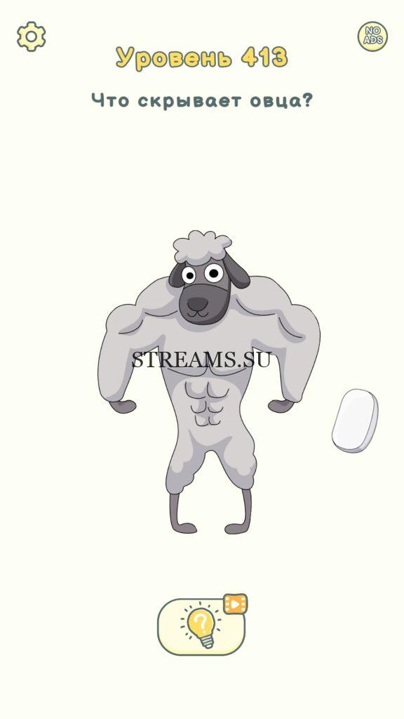 Что скрывает овца? Уровень 413 — DOP 2: Delete One Part. Вы готовы к продолжению первой части игры? Тогда вперед! Эта игра DOP 2 (Расшифровка: Delete One Part) , которая отличается от первой части тем, что здесь нам нужно будет не дорисовывать предметы, а удалять или стирать их. Вас ждет множество хитроумных и интересных уровней. На первом этапе нам будут подсказывать, что нужно удали, но потом становится всё тяжелее и тяжелее решать головоломки. Разработчики постарались сделать игру привлекательной. Геймплей заставит вас просидеть за игрой очень долго. Красивая графика исполнения. Тренировка мозга и многое другое, всё это ждет нас в замечательной головоломке DOP 2. Если не получается пройти уровень, или зашли в тупик, то вы можете найти ответ на любой уровень на нашем сайте STREAMS.SU! Ответ на этот уровень находиться чуть ниже..