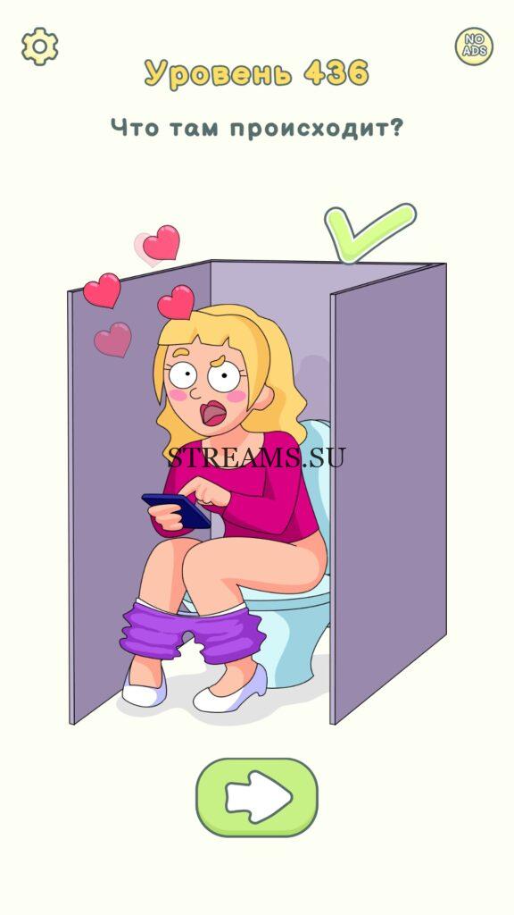 Что там происходит? Уровень 436 — DOP 2: Delete One Part. Вы готовы к продолжению первой части игры? Тогда вперед! Эта игра DOP 2 (Расшифровка: Delete One Part) , которая отличается от первой части тем, что здесь нам нужно будет не дорисовывать предметы, а удалять или стирать их. Вас ждет множество хитроумных и интересных уровней. На первом этапе нам будут подсказывать, что нужно удали, но потом становится всё тяжелее и тяжелее решать головоломки. Разработчики постарались сделать игру привлекательной. Геймплей заставит вас просидеть за игрой очень долго. Красивая графика исполнения. Тренировка мозга и многое другое, всё это ждет нас в замечательной головоломке DOP 2. Если не получается пройти уровень, или зашли в тупик, то вы можете найти ответ на любой уровень на нашем сайте STREAMS.SU! Ответ на этот уровень находиться чуть ниже..