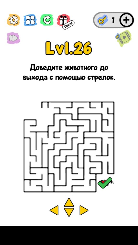 Доведите животного до выхода с помощью стрелок. 26 уровень Trick Me: логические головоломки — Это игра созданная в виде викторины. Каждый новый уровень отличается от предыдущего, что делает игровой процесс затягивающим и интересным. Если ты хочешь узнать насколько ты умный, тогда эта игра точно для тебя! Trick Me поможет тебе развить нестандартное мышление, и повысить свой IQ. В этой игре уже есть 236 уровней, которые постоянно обновляются и пополняются. Но если застрял на одном или нескольких уровнях, и не можешь их пройти, то наш сайт придет на помощь, у нас есть все ответы на уровни игры Trick Me.