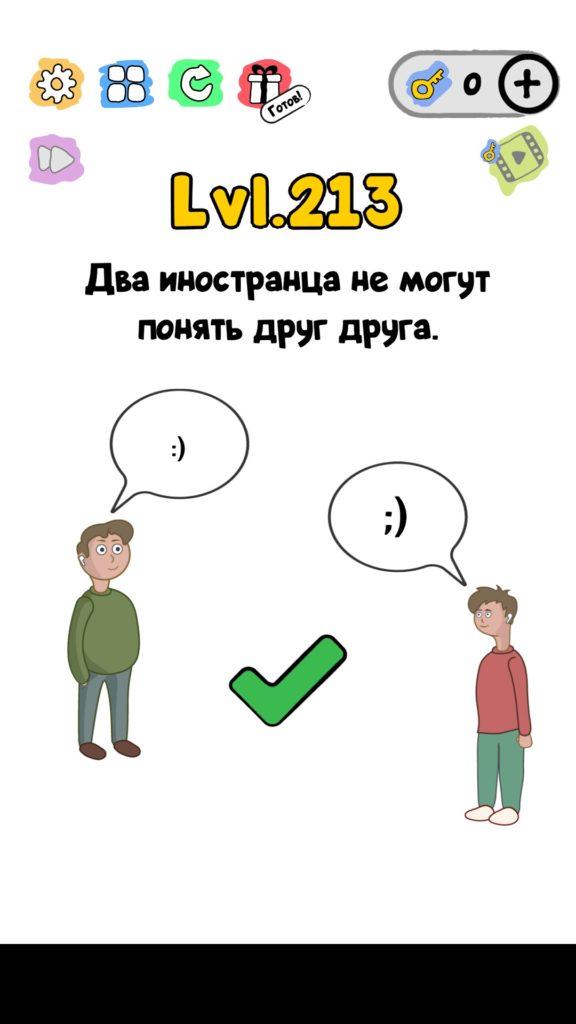 Два иностранца не могут понять друг друга. 213 уровень Trick Me: логические головоломки — Это игра созданная в виде викторины. Каждый новый уровень отличается от предыдущего, что делает игровой процесс затягивающим и интересным. Если ты хочешь узнать насколько ты умный, тогда эта игра точно для тебя! Trick Me поможет тебе развить нестандартное мышление, и повысить свой IQ. В этой игре уже есть 236 уровней, которые постоянно обновляются и пополняются. Но если застрял на одном или нескольких уровнях, и не можешь их пройти, то наш сайт придет на помощь, у нас есть все ответы на уровни игры Trick Me.