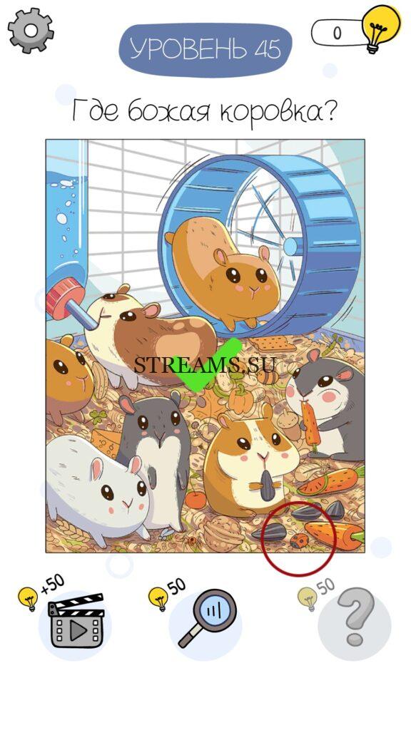 Где божая коровка? Уровень 45 — Who is? Головоломки и загадки — это уникальная головоломка, с которой не соскучишься! Если вам понравились такие игры как Brain Test и вторая её часть, то вам придется по вкусу и эта игра. С помощью подсказок, которые нам предстоит найти, нужно проходить уровень за уровнем. С каждым уровнем сложность отгадки будет расти. Поэтому приготовьтесь попотеть, чтобы пройти все уровни. Преимущества этой игры в том, что она работает без интернета! Если у вас не получается пройти один из уровней, то не отчаивайтесь. Вы всегда сможете найти ответы к игре Who is? на нашем замечательном сайте!