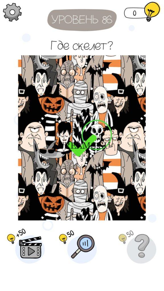 Где скелет? Уровень 86 — Who is? Головоломки и загадки — это уникальная головоломка, с которой не соскучишься! Если вам понравились такие игры как Brain Test и вторая её часть, то вам придется по вкусу и эта игра. С помощью подсказок, которые нам предстоит найти, нужно проходить уровень за уровнем. С каждым уровнем сложность отгадки будет расти. Поэтому приготовьтесь попотеть, чтобы пройти все уровни. Преимущества этой игры в том, что она работает без интернета! Если у вас не получается пройти один из уровней, то не отчаивайтесь. Вы всегда сможете найти ответы к игре Who is? на нашем замечательном сайте!