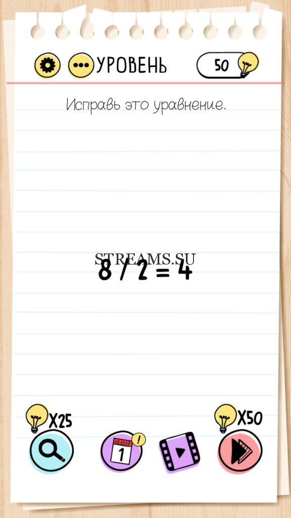 Исправь это уравнение. Уровень 82 — Brain Test — Это самая популярная головоломка, в которой вам предстоит разгадывать непростые задачки. Нужно будет искать нестандартные решения. Название игры говорит само за себя (Тест мозга). С её помощью вы сможете повысить свой IQ, и интеллект. Иногда ответ может быть очень прост. Вы можете играть в компании друзей или родных. Брейн Тест, это отличный способ провести время с пользой и узнать насколько ты умный. Но если вы не можете решить один или несколько уровней, то воспользуйтесь подсказками с нашего сайта.
