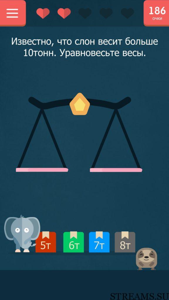 Известно, что слон весит больше 10 тонн. Уравновесьте весы. 89 уровень Каверзный тест (Tricky test) — игра от разработчиков студии NatGames. Если вам надоели наивные и простые задачки и головоломки, то эта игра определенно для вас! Нужно будет трясти, переворачивать, гладить свой телефон, чтобы пройти уровень. В описании игры написано, что 94% скачавших, не пройдут игру с первого раза. Чтобы исправить этот процент в меньшую сторону, мы предоставляем вам ответы на все уровни игры.