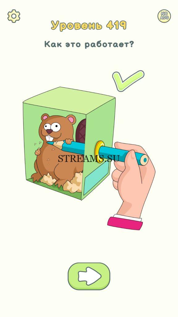 Как это работает? Уровень 419 — DOP 2: Delete One Part. Вы готовы к продолжению первой части игры? Тогда вперед! Эта игра DOP 2 (Расшифровка: Delete One Part) , которая отличается от первой части тем, что здесь нам нужно будет не дорисовывать предметы, а удалять или стирать их. Вас ждет множество хитроумных и интересных уровней. На первом этапе нам будут подсказывать, что нужно удали, но потом становится всё тяжелее и тяжелее решать головоломки. Разработчики постарались сделать игру привлекательной. Геймплей заставит вас просидеть за игрой очень долго. Красивая графика исполнения. Тренировка мозга и многое другое, всё это ждет нас в замечательной головоломке DOP 2. Если не получается пройти уровень, или зашли в тупик, то вы можете найти ответ на любой уровень на нашем сайте STREAMS.SU! Ответ на этот уровень находиться чуть ниже..