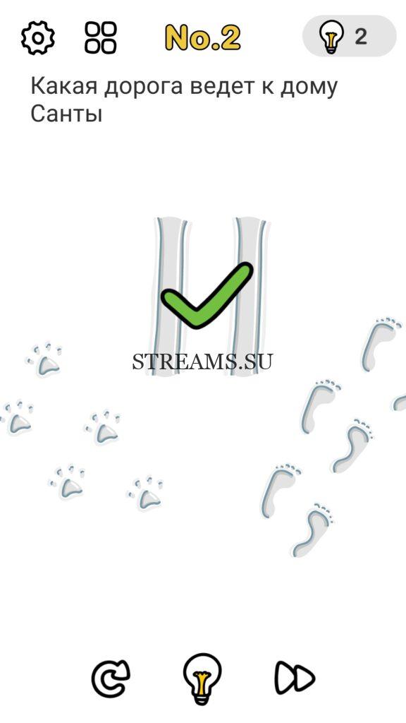 Какая дорога ведет к дому Санты? (В поисках Санты) Уровень 2 — Brain Out: Ответ на этот уровень находится чуть ниже. Всегда было интересно узнать каков твой IQ? Эта игра поможет тебе узнать ответ на этот вопрос! В ней встречаются как логические загадки, так и не очень. С помощью этой интересной головоломки вы сможете развить нестандартное мышление, креативность, воображение а также улучшить способность запоминать. Некоторые решения задач, могут показаться абсурдными. Играйте в Brain Out с друзьями и родственниками. А если у вас не получается пройти один или несколько уровней, вы можете воспользоваться подсказками с нашего сайта.