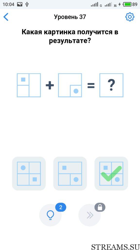 Какая картинка получится в результате? 37 уровень Easy Game — это интересная но в тоже время сложная головоломка, которая заставит вас включить нестандартное мышление. Прокачайте свой мозг и IQ. Почувствуйте себя самым умным, решая захватывающие и заковыристые задачки. Разработчики Easybrain, обещают, что с помощью этой игры вы сможете развить творческие навыки. Но если не сможете пройти какой-нибудь из уровней, то воспользуйтесь ответами с нашего сайта.