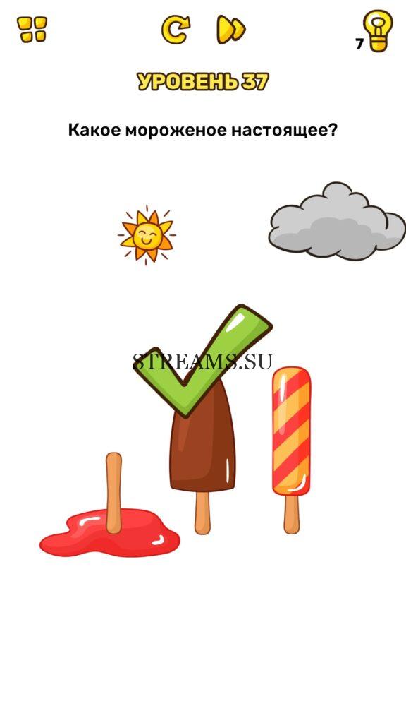 Какое мороженое настоящее? Уровень 37 — Brain Blow: Тест на гениальность — Ответ на этот уровень находится под фото. Очередная игра от популярных разработчиков головоломок CASUAL AZUR GAMES. Если вы хотите взорвать свой мозг и развить навыки нестандартного мышления, тогда игра Брейн Блоу определенно вам понравится. Если не получается решить задание, то попробуйте включить нестандартное мышление, тряхнуть телефон, погладить его или использовать больше пальцев. Эта игра способна развить в вас навыки следопыта, креативность и прокачать ваш IQ. Но, а если все-же не получается пройти уровень, найдите правильное решение на нашем сайте.
