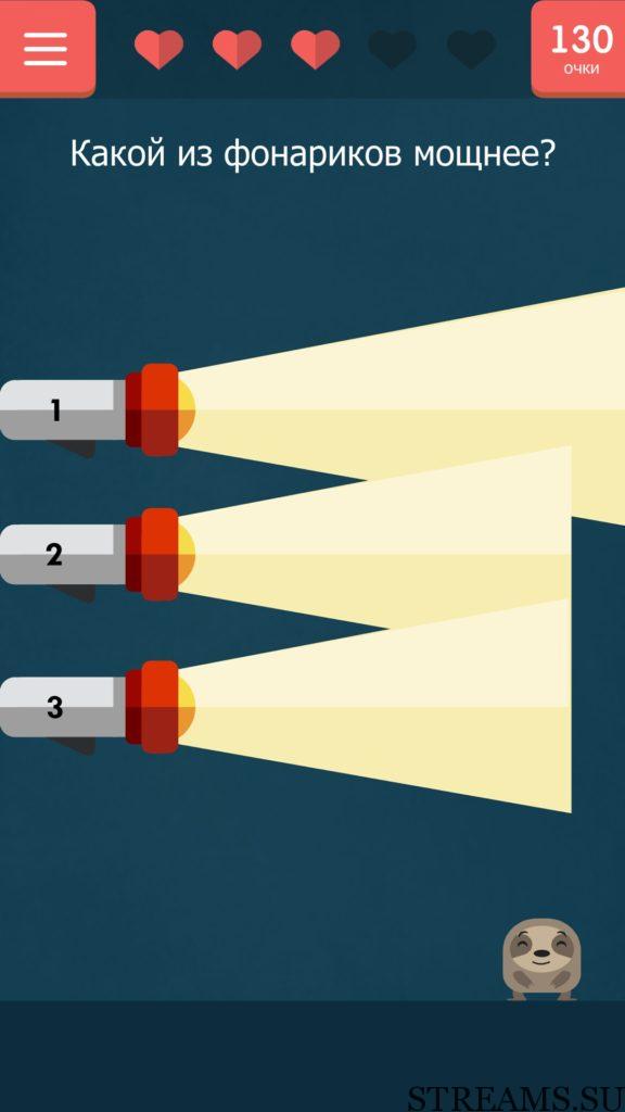 Какой из фонариков мощнее? 61 уровень Каверзный тест (Tricky test) — игра от разработчиков студии NatGames. Если вам надоели наивные и простые задачки и головоломки, то эта игра определенно для вас! Нужно будет трясти, переворачивать, гладить свой телефон, чтобы пройти уровень. В описании игры написано, что 94% скачавших, не пройдут игру с первого раза. Чтобы исправить этот процент в меньшую сторону, мы предоставляем вам ответы на все уровни игры.