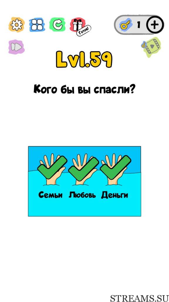 Кого бы вы спасли? 59 уровень Trick Me: логические головоломки — Это игра созданная в виде викторины. Каждый новый уровень отличается от предыдущего, что делает игровой процесс затягивающим и интересным. Если ты хочешь узнать насколько ты умный, тогда эта игра точно для тебя! Trick Me поможет тебе развить нестандартное мышление, и повысить свой IQ. В этой игре уже есть 236 уровней, которые постоянно обновляются и пополняются. Но если застрял на одном или нескольких уровнях, и не можешь их пройти, то наш сайт придет на помощь, у нас есть все ответы на уровни игры Trick Me.