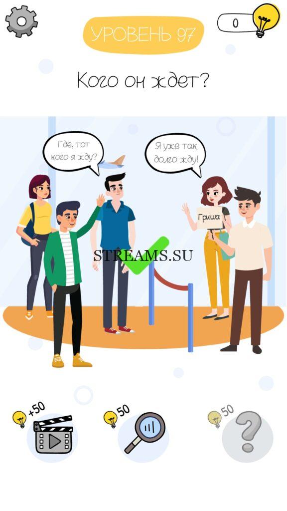 Кого он ждет? Уровень 97 — Who is? Головоломки и загадки — это уникальная головоломка, с которой не соскучишься! Если вам понравились такие игры как Brain Test и вторая её часть, то вам придется по вкусу и эта игра. С помощью подсказок, которые нам предстоит найти, нужно проходить уровень за уровнем. С каждым уровнем сложность отгадки будет расти. Поэтому приготовьтесь попотеть, чтобы пройти все уровни. Преимущества этой игры в том, что она работает без интернета! Если у вас не получается пройти один из уровней, то не отчаивайтесь. Вы всегда сможете найти ответы к игре Who is? на нашем замечательном сайте!
