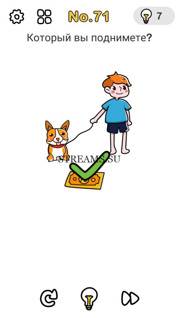 Который вы поднимите? Уровень 71 — Brain Out: Ответ на этот уровень находится чуть ниже. Всегда было интересно узнать каков твой IQ? Эта игра поможет тебе узнать ответ на этот вопрос! В ней встречаются как логические загадки, так и не очень. С помощью этой интересной головоломки вы сможете развить нестандартное мышление, креативность, воображение а также улучшить способность запоминать. Некоторые решения задач, могут показаться абсурдными. Играйте в Brain Out с друзьями и родственниками. А если у вас не получается пройти один или несколько уровней, вы можете воспользоваться подсказками с нашего сайта.