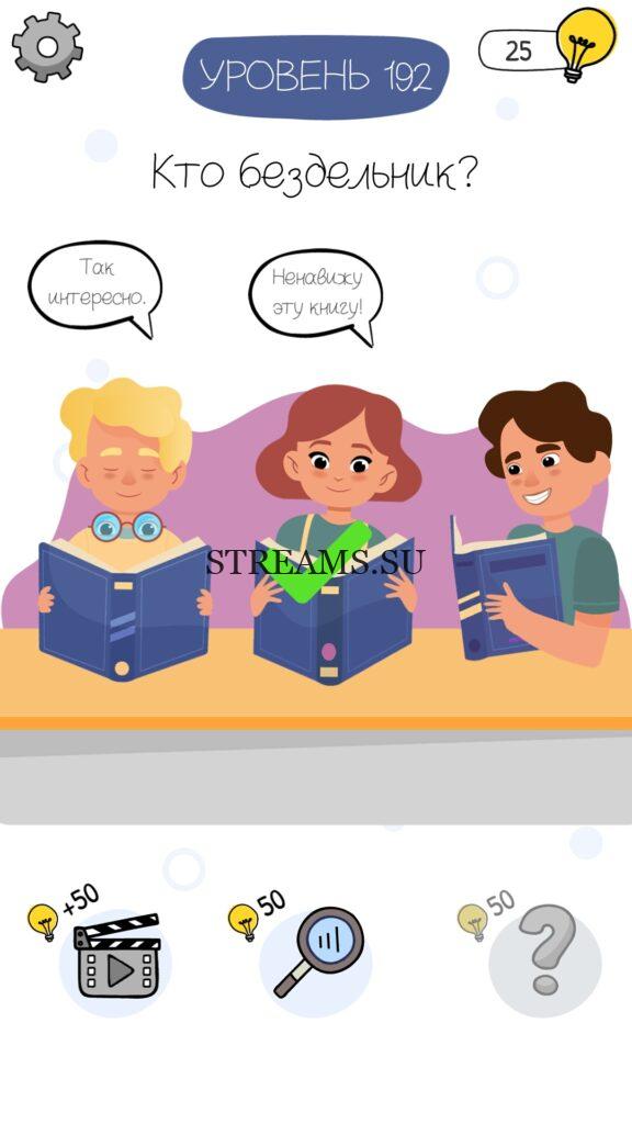 Кто бездельник? Уровень 192 — Who is? Головоломки и загадки — это уникальная головоломка, с которой не соскучишься! Если вам понравились такие игры как Brain Test и вторая её часть, то вам придется по вкусу и эта игра. С помощью подсказок, которые нам предстоит найти, нужно проходить уровень за уровнем. С каждым уровнем сложность отгадки будет расти. Поэтому приготовьтесь попотеть, чтобы пройти все уровни. Преимущества этой игры в том, что она работает без интернета! Если у вас не получается пройти один из уровней, то не отчаивайтесь. Вы всегда сможете найти ответы к игре Who is? на нашем замечательном сайте!