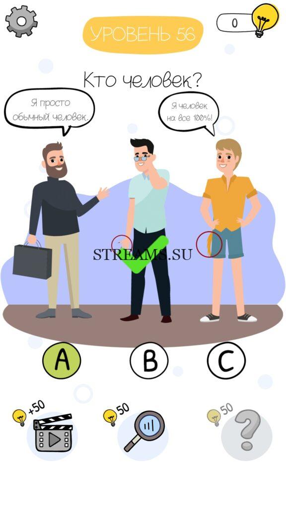 Кто человек? Уровень 56 — Who is? Головоломки и загадки — это уникальная головоломка, с которой не соскучишься! Если вам понравились такие игры как Brain Test и вторая её часть, то вам придется по вкусу и эта игра. С помощью подсказок, которые нам предстоит найти, нужно проходить уровень за уровнем. С каждым уровнем сложность отгадки будет расти. Поэтому приготовьтесь попотеть, чтобы пройти все уровни. Преимущества этой игры в том, что она работает без интернета! Если у вас не получается пройти один из уровней, то не отчаивайтесь. Вы всегда сможете найти ответы к игре Who is? на нашем замечательном сайте!