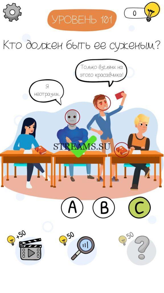 Кто должен быть ее суженным? Уровень 101 — Who is? Головоломки и загадки — это уникальная головоломка, с которой не соскучишься! Если вам понравились такие игры как Brain Test и вторая её часть, то вам придется по вкусу и эта игра. С помощью подсказок, которые нам предстоит найти, нужно проходить уровень за уровнем. С каждым уровнем сложность отгадки будет расти. Поэтому приготовьтесь попотеть, чтобы пройти все уровни. Преимущества этой игры в том, что она работает без интернета! Если у вас не получается пройти один из уровней, то не отчаивайтесь. Вы всегда сможете найти ответы к игре Who is? на нашем замечательном сайте!