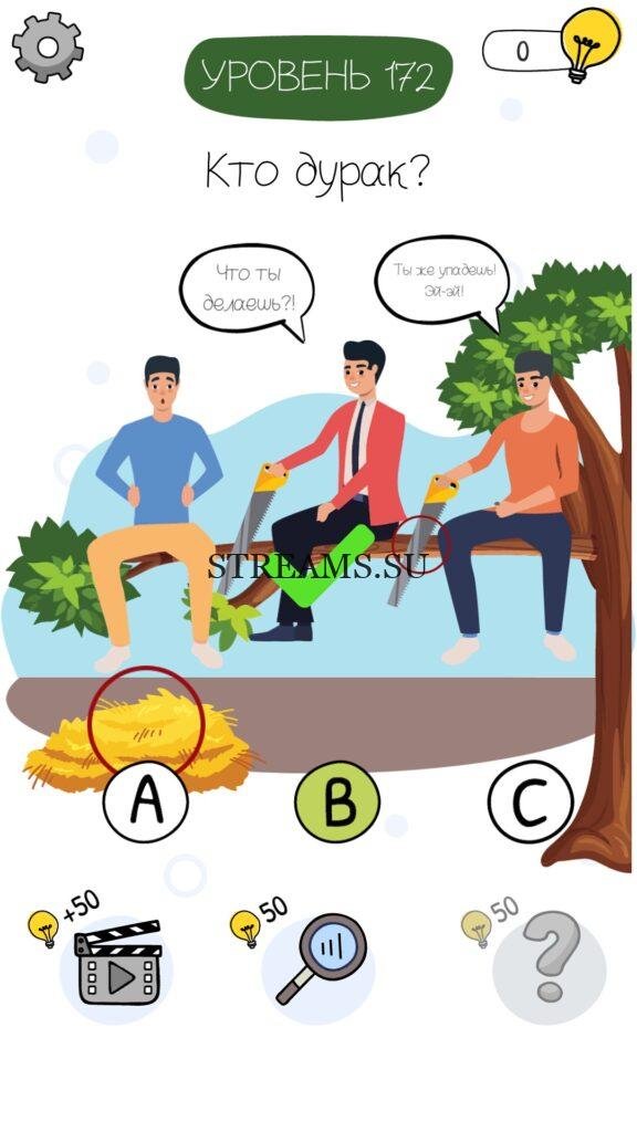 Кто дурак? Уровень 172 — Who is? Головоломки и загадки — это уникальная головоломка, с которой не соскучишься! Если вам понравились такие игры как Brain Test и вторая её часть, то вам придется по вкусу и эта игра. С помощью подсказок, которые нам предстоит найти, нужно проходить уровень за уровнем. С каждым уровнем сложность отгадки будет расти. Поэтому приготовьтесь попотеть, чтобы пройти все уровни. Преимущества этой игры в том, что она работает без интернета! Если у вас не получается пройти один из уровней, то не отчаивайтесь. Вы всегда сможете найти ответы к игре Who is? на нашем замечательном сайте!