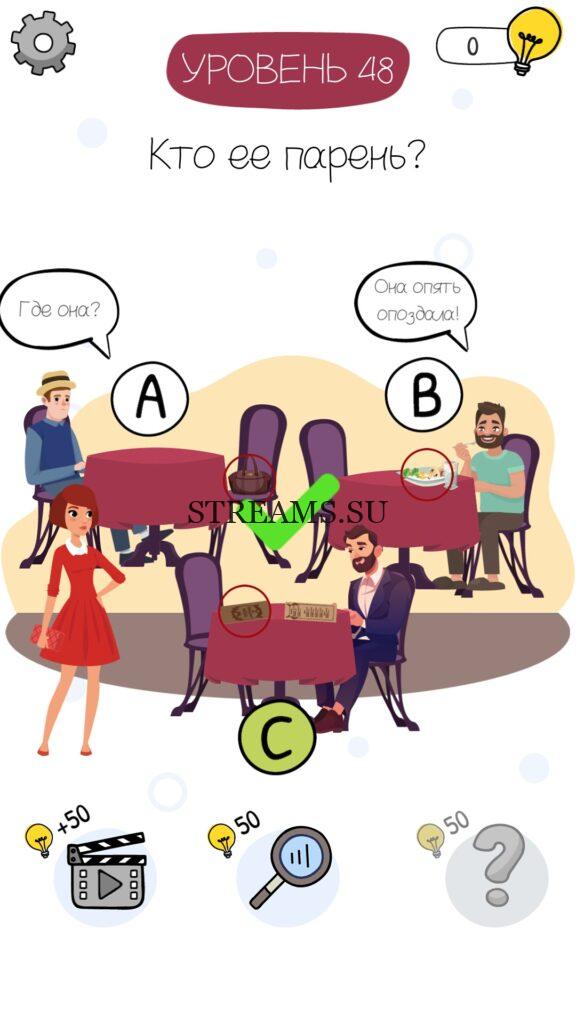 Кто ее парень? Уровень 48 — Who is? Головоломки и загадки — это уникальная головоломка, с которой не соскучишься! Если вам понравились такие игры как Brain Test и вторая её часть, то вам придется по вкусу и эта игра. С помощью подсказок, которые нам предстоит найти, нужно проходить уровень за уровнем. С каждым уровнем сложность отгадки будет расти. Поэтому приготовьтесь попотеть, чтобы пройти все уровни. Преимущества этой игры в том, что она работает без интернета! Если у вас не получается пройти один из уровней, то не отчаивайтесь. Вы всегда сможете найти ответы к игре Who is? на нашем замечательном сайте!