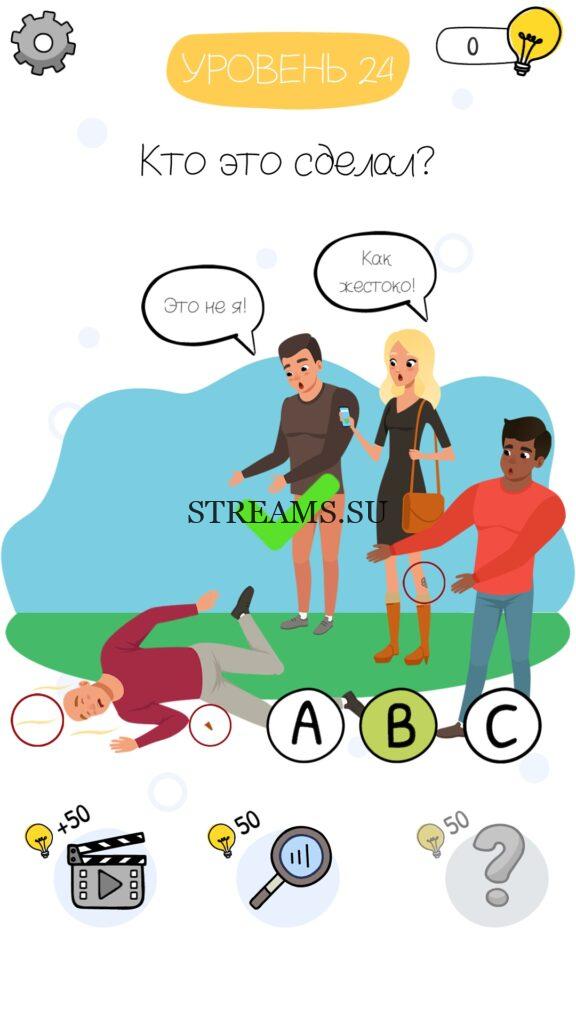 Кто это сделал? Уровень 24 — Who is? Головоломки и загадки — это уникальная головоломка, с которой не соскучишься! Если вам понравились такие игры как Brain Test и вторая её часть, то вам придется по вкусу и эта игра. С помощью подсказок, которые нам предстоит найти, нужно проходить уровень за уровнем. С каждым уровнем сложность отгадки будет расти. Поэтому приготовьтесь попотеть, чтобы пройти все уровни. Преимущества этой игры в том, что она работает без интернета! Если у вас не получается пройти один из уровней, то не отчаивайтесь. Вы всегда сможете найти ответы к игре Who is? на нашем замечательном сайте!