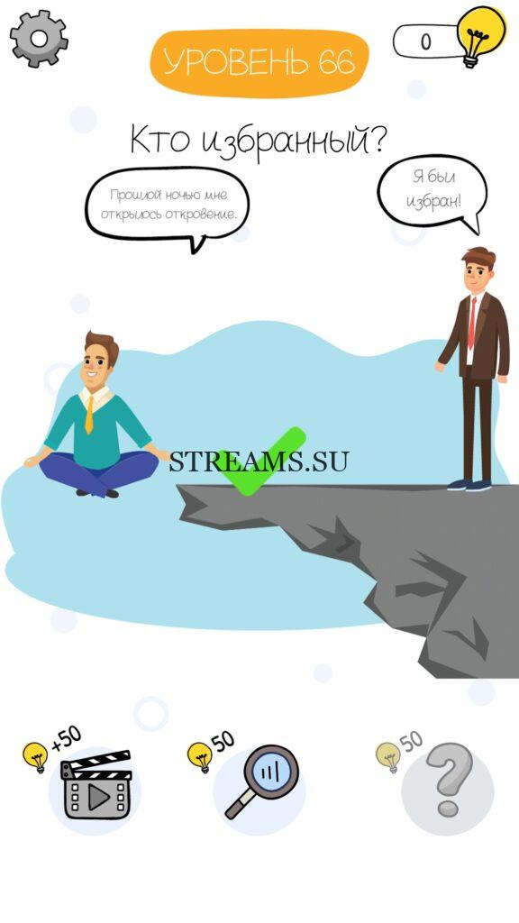 Кто избранный? Уровень 66 — Who is? Головоломки и загадки — это уникальная головоломка, с которой не соскучишься! Если вам понравились такие игры как Brain Test и вторая её часть, то вам придется по вкусу и эта игра. С помощью подсказок, которые нам предстоит найти, нужно проходить уровень за уровнем. С каждым уровнем сложность отгадки будет расти. Поэтому приготовьтесь попотеть, чтобы пройти все уровни. Преимущества этой игры в том, что она работает без интернета! Если у вас не получается пройти один из уровней, то не отчаивайтесь. Вы всегда сможете найти ответы к игре Who is? на нашем замечательном сайте!