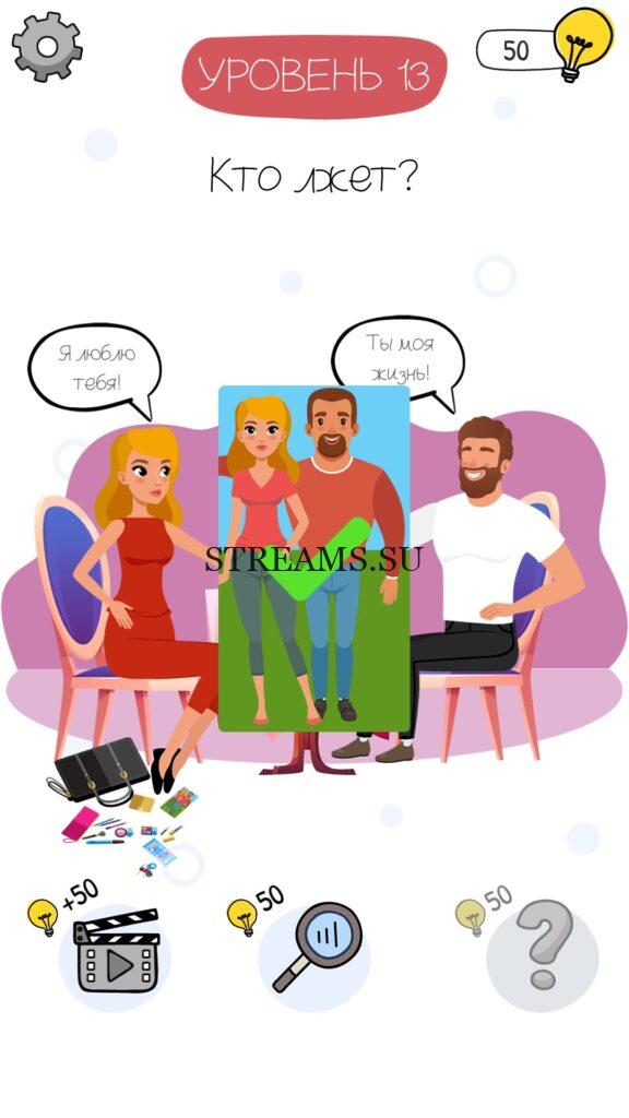 Кто лжет? Уровень 13 — Who is? Головоломки и загадки — это уникальная головоломка, с которой не соскучишься! Если вам понравились такие игры как Brain Test и вторая её часть, то вам придется по вкусу и эта игра. С помощью подсказок, которые нам предстоит найти, нужно проходить уровень за уровнем. С каждым уровнем сложность отгадки будет расти. Поэтому приготовьтесь попотеть, чтобы пройти все уровни. Преимущества этой игры в том, что она работает без интернета! Если у вас не получается пройти один из уровней, то не отчаивайтесь. Вы всегда сможете найти ответы к игре Who is? на нашем замечательном сайте!