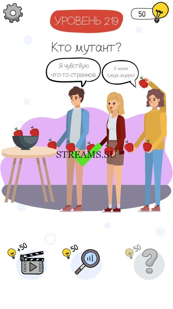 Кто мутант? Уровень 219 — Who is? Головоломки и загадки — это уникальная головоломка, с которой не соскучишься! Если вам понравились такие игры как Brain Test и вторая её часть, то вам придется по вкусу и эта игра. С помощью подсказок, которые нам предстоит найти, нужно проходить уровень за уровнем. С каждым уровнем сложность отгадки будет расти. Поэтому приготовьтесь попотеть, чтобы пройти все уровни. Преимущества этой игры в том, что она работает без интернета! Если у вас не получается пройти один из уровней, то не отчаивайтесь. Вы всегда сможете найти ответы к игре Who is? на нашем замечательном сайте!
