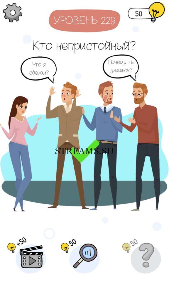 Кто непристойный? Уровень 229 — Who is? Головоломки и загадки — это уникальная головоломка, с которой не соскучишься! Если вам понравились такие игры как Brain Test и вторая её часть, то вам придется по вкусу и эта игра. С помощью подсказок, которые нам предстоит найти, нужно проходить уровень за уровнем. С каждым уровнем сложность отгадки будет расти. Поэтому приготовьтесь попотеть, чтобы пройти все уровни. Преимущества этой игры в том, что она работает без интернета! Если у вас не получается пройти один из уровней, то не отчаивайтесь. Вы всегда сможете найти ответы к игре Who is? на нашем замечательном сайте!