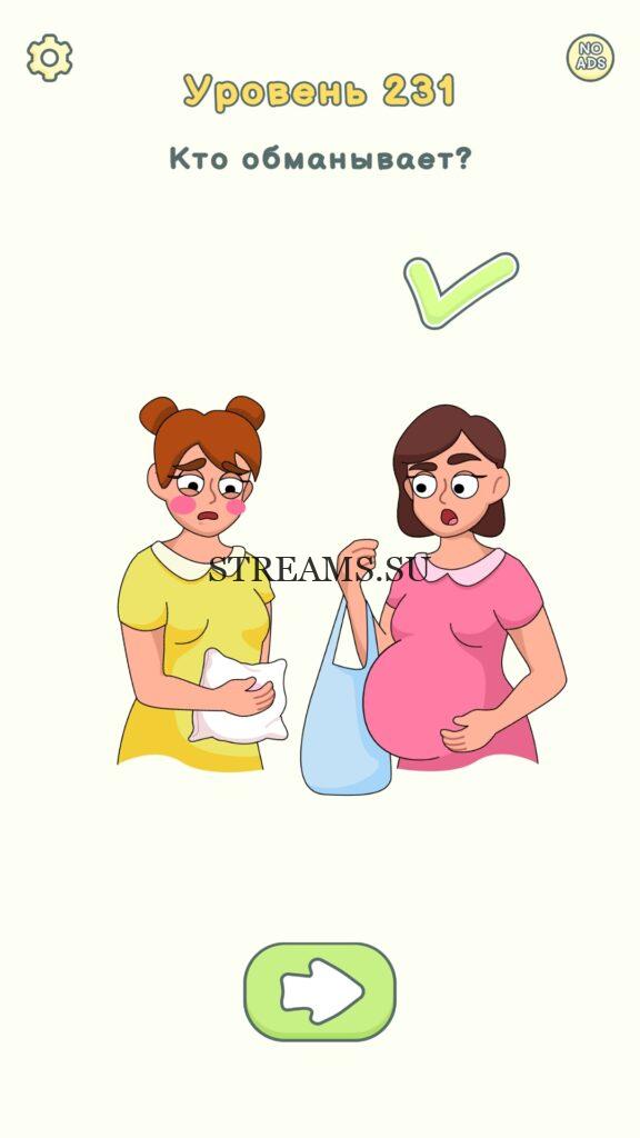 Кто обманывает? Уровень 231 — DOP 2: Delete One Part. Вы готовы к продолжению первой части игры? Тогда вперед! Эта игра DOP 2 (Расшифровка: Delete One Part) , которая отличается от первой части тем, что здесь нам нужно будет не дорисовывать предметы, а удалять или стирать их. Вас ждет множество хитроумных и интересных уровней. На первом этапе нам будут подсказывать, что нужно удали, но потом становится всё тяжелее и тяжелее решать головоломки. Разработчики постарались сделать игру привлекательной. Геймплей заставит вас просидеть за игрой очень долго. Красивая графика исполнения. Тренировка мозга и многое другое, всё это ждет нас в замечательной головоломке DOP 2. Если не получается пройти уровень, или зашли в тупик, то вы можете найти ответ на любой уровень на нашем сайте STREAMS.SU! Ответ на этот уровень находиться чуть ниже..