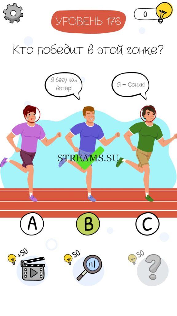 Кто победит в этой гонке? Уровень 176 — Who is? Головоломки и загадки — это уникальная головоломка, с которой не соскучишься! Если вам понравились такие игры как Brain Test и вторая её часть, то вам придется по вкусу и эта игра. С помощью подсказок, которые нам предстоит найти, нужно проходить уровень за уровнем. С каждым уровнем сложность отгадки будет расти. Поэтому приготовьтесь попотеть, чтобы пройти все уровни. Преимущества этой игры в том, что она работает без интернета! Если у вас не получается пройти один из уровней, то не отчаивайтесь. Вы всегда сможете найти ответы к игре Who is? на нашем замечательном сайте!