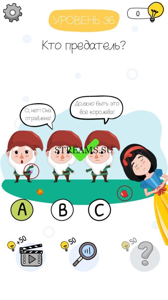 Кто предатель? Уровень 36 — Who is? Головоломки и загадки — это уникальная головоломка, с которой не соскучишься! Если вам понравились такие игры как Brain Test и вторая её часть, то вам придется по вкусу и эта игра. С помощью подсказок, которые нам предстоит найти, нужно проходить уровень за уровнем. С каждым уровнем сложность отгадки будет расти. Поэтому приготовьтесь попотеть, чтобы пройти все уровни. Преимущества этой игры в том, что она работает без интернета! Если у вас не получается пройти один из уровней, то не отчаивайтесь. Вы всегда сможете найти ответы к игре Who is? на нашем замечательном сайте!
