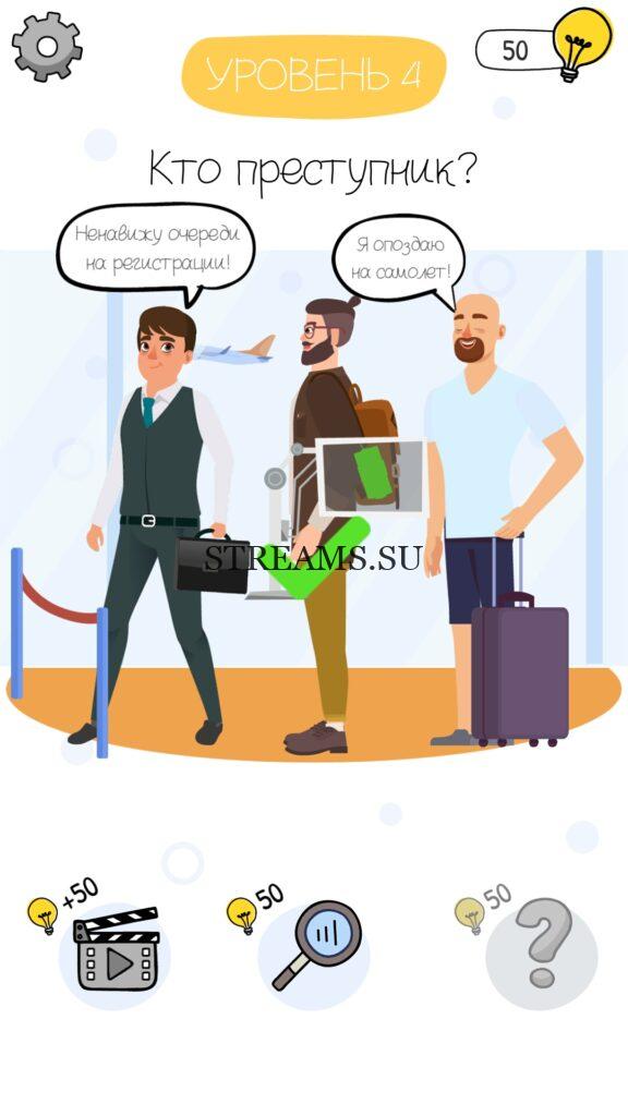 Кто преступник? Уровень 4 — Who is? Головоломки и загадки — это уникальная головоломка, с которой не соскучишься! Если вам понравились такие игры как Brain Test и вторая её часть, то вам придется по вкусу и эта игра. С помощью подсказок, которые нам предстоит найти, нужно проходить уровень за уровнем. С каждым уровнем сложность отгадки будет расти. Поэтому приготовьтесь попотеть, чтобы пройти все уровни. Преимущества этой игры в том, что она работает без интернета! Если у вас не получается пройти один из уровней, то не отчаивайтесь. Вы всегда сможете найти ответы к игре Who is? на нашем замечательном сайте!