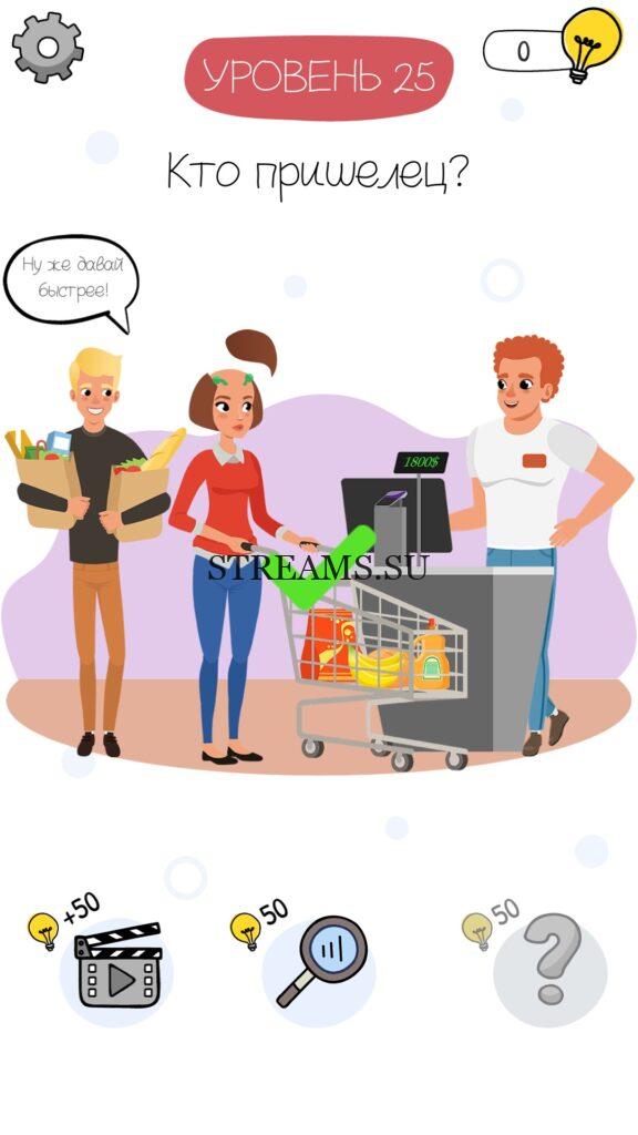 Кто пришелец? Уровень 25 — Who is? Головоломки и загадки — это уникальная головоломка, с которой не соскучишься! Если вам понравились такие игры как Brain Test и вторая её часть, то вам придется по вкусу и эта игра. С помощью подсказок, которые нам предстоит найти, нужно проходить уровень за уровнем. С каждым уровнем сложность отгадки будет расти. Поэтому приготовьтесь попотеть, чтобы пройти все уровни. Преимущества этой игры в том, что она работает без интернета! Если у вас не получается пройти один из уровней, то не отчаивайтесь. Вы всегда сможете найти ответы к игре Who is? на нашем замечательном сайте!