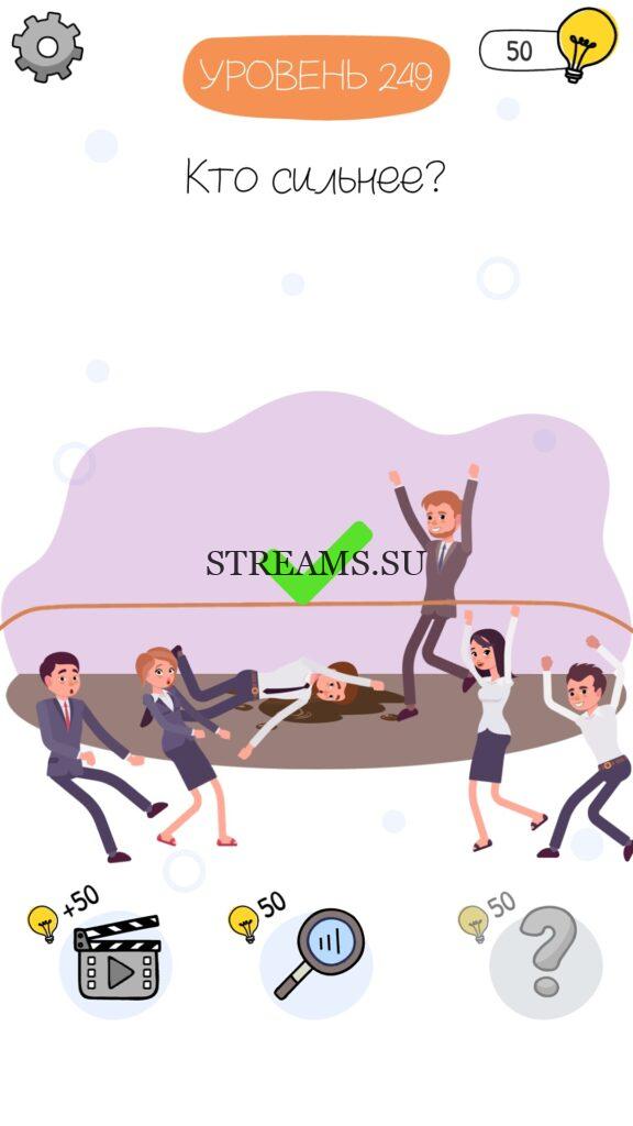 Кто сильнее? Уровень 249 — Who is? Головоломки и загадки — это уникальная головоломка, с которой не соскучишься! Если вам понравились такие игры как Brain Test и вторая её часть, то вам придется по вкусу и эта игра. С помощью подсказок, которые нам предстоит найти, нужно проходить уровень за уровнем. С каждым уровнем сложность отгадки будет расти. Поэтому приготовьтесь попотеть, чтобы пройти все уровни. Преимущества этой игры в том, что она работает без интернета! Если у вас не получается пройти один из уровней, то не отчаивайтесь. Вы всегда сможете найти ответы к игре Who is? на нашем замечательном сайте!