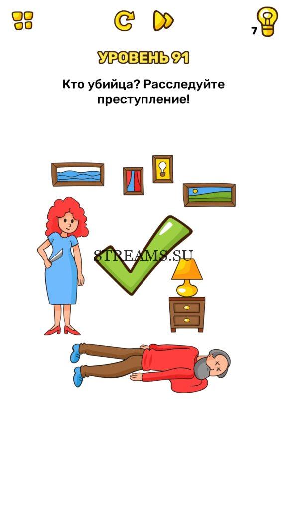 Кто убийца? Расследуйте преступление! Уровень 91 — Brain Blow: Тест на гениальность — Ответ на этот уровень находится под фото. Очередная игра от популярных разработчиков головоломок CASUAL AZUR GAMES. Если вы хотите взорвать свой мозг и развить навыки нестандартного мышления, тогда игра Брейн Блоу определенно вам понравится. Если не получается решить задание, то попробуйте включить нестандартное мышление, тряхнуть телефон, погладить его или использовать больше пальцев. Эта игра способна развить в вас навыки следопыта, креативность и прокачать ваш IQ. Но, а если все-же не получается пройти уровень, найдите правильное решение на нашем сайте.
