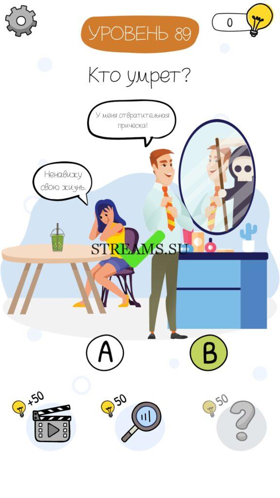 Кто умрет? Уровень 89 — Who is? Головоломки и загадки — это уникальная головоломка, с которой не соскучишься! Если вам понравились такие игры как Brain Test и вторая её часть, то вам придется по вкусу и эта игра. С помощью подсказок, которые нам предстоит найти, нужно проходить уровень за уровнем. С каждым уровнем сложность отгадки будет расти. Поэтому приготовьтесь попотеть, чтобы пройти все уровни. Преимущества этой игры в том, что она работает без интернета! Если у вас не получается пройти один из уровней, то не отчаивайтесь. Вы всегда сможете найти ответы к игре Who is? на нашем замечательном сайте!