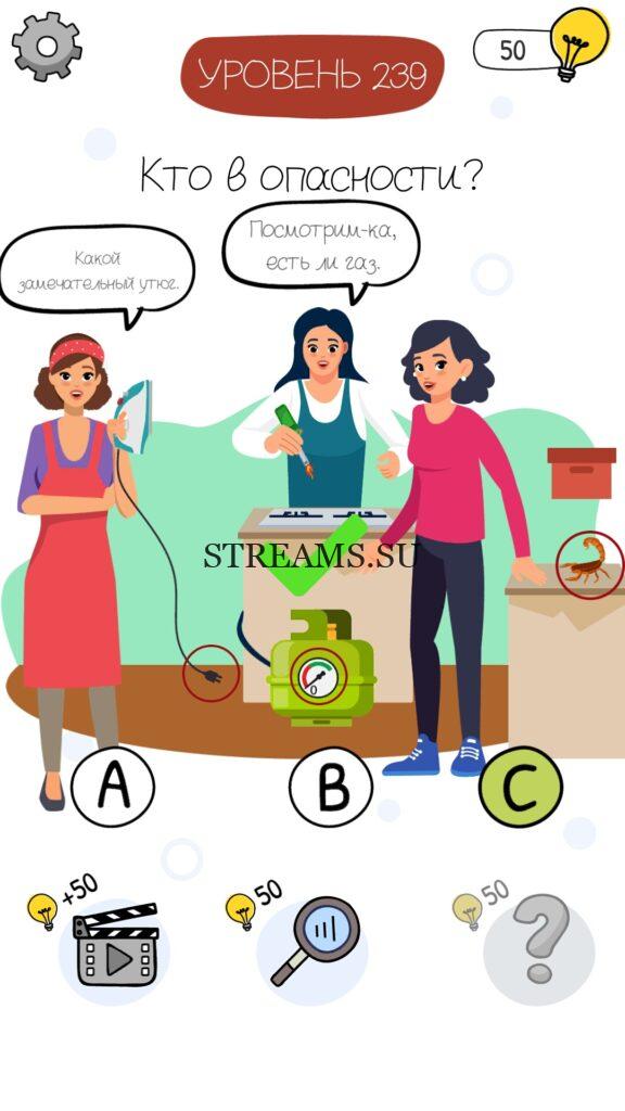 Кто в опасности? Уровень 239 — Who is? Головоломки и загадки — это уникальная головоломка, с которой не соскучишься! Если вам понравились такие игры как Brain Test и вторая её часть, то вам придется по вкусу и эта игра. С помощью подсказок, которые нам предстоит найти, нужно проходить уровень за уровнем. С каждым уровнем сложность отгадки будет расти. Поэтому приготовьтесь попотеть, чтобы пройти все уровни. Преимущества этой игры в том, что она работает без интернета! Если у вас не получается пройти один из уровней, то не отчаивайтесь. Вы всегда сможете найти ответы к игре Who is? на нашем замечательном сайте!
