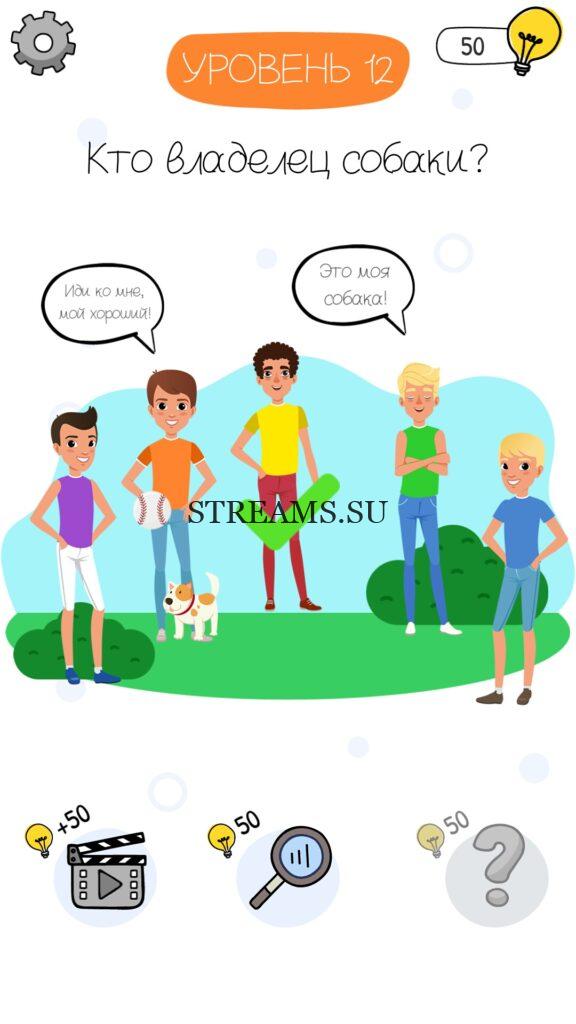 Кто владелец собаки? Уровень 12 — Who is? Головоломки и загадки — это уникальная головоломка, с которой не соскучишься! Если вам понравились такие игры как Brain Test и вторая её часть, то вам придется по вкусу и эта игра. С помощью подсказок, которые нам предстоит найти, нужно проходить уровень за уровнем. С каждым уровнем сложность отгадки будет расти. Поэтому приготовьтесь попотеть, чтобы пройти все уровни. Преимущества этой игры в том, что она работает без интернета! Если у вас не получается пройти один из уровней, то не отчаивайтесь. Вы всегда сможете найти ответы к игре Who is? на нашем замечательном сайте!