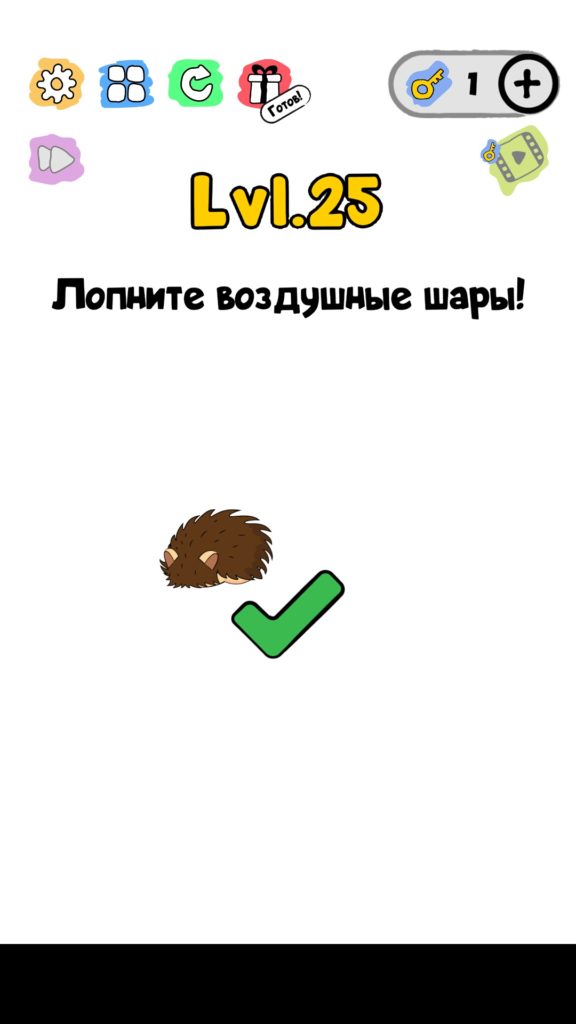 ОТВЕТ: Стукните по ёжику несколько раз, и перемещая его по экрану лопните все шарики