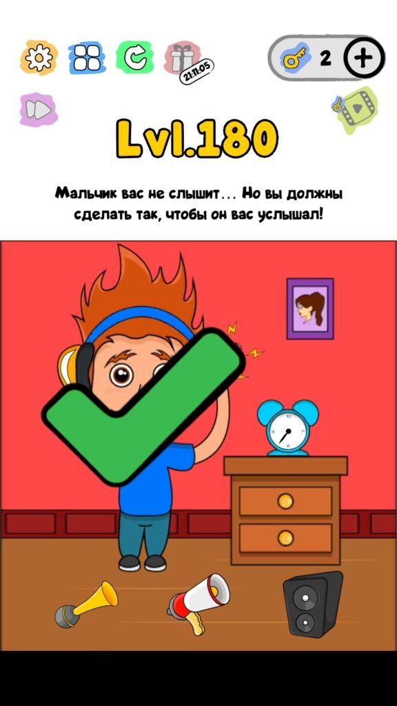 Мальчик вас не слышит… Но вы должны сделать так, чтобы он вас услышал! 180 уровень Trick Me: логические головоломки — Это игра созданная в виде викторины. Каждый новый уровень отличается от предыдущего, что делает игровой процесс затягивающим и интересным. Если ты хочешь узнать насколько ты умный, тогда эта игра точно для тебя! Trick Me поможет тебе развить нестандартное мышление, и повысить свой IQ. В этой игре уже есть 236 уровней, которые постоянно обновляются и пополняются. Но если застрял на одном или нескольких уровнях, и не можешь их пройти, то наш сайт придет на помощь, у нас есть все ответы на уровни игры Trick Me.