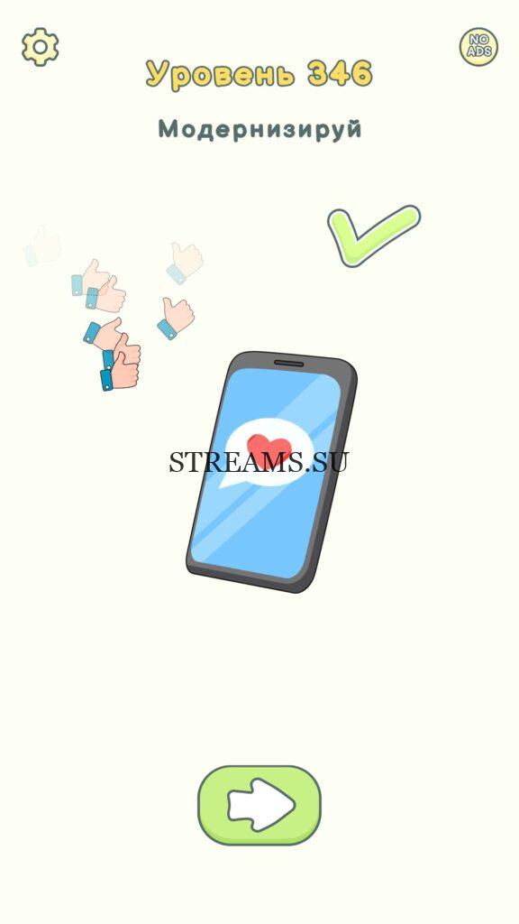 Модернизируй. Уровень 346 — DOP 2: Delete One Part. Вы готовы к продолжению первой части игры? Тогда вперед! Эта игра DOP 2 (Расшифровка: Delete One Part) , которая отличается от первой части тем, что здесь нам нужно будет не дорисовывать предметы, а удалять или стирать их. Вас ждет множество хитроумных и интересных уровней. На первом этапе нам будут подсказывать, что нужно удали, но потом становится всё тяжелее и тяжелее решать головоломки. Разработчики постарались сделать игру привлекательной. Геймплей заставит вас просидеть за игрой очень долго. Красивая графика исполнения. Тренировка мозга и многое другое, всё это ждет нас в замечательной головоломке DOP 2. Если не получается пройти уровень, или зашли в тупик, то вы можете найти ответ на любой уровень на нашем сайте STREAMS.SU! Ответ на этот уровень находиться чуть ниже..