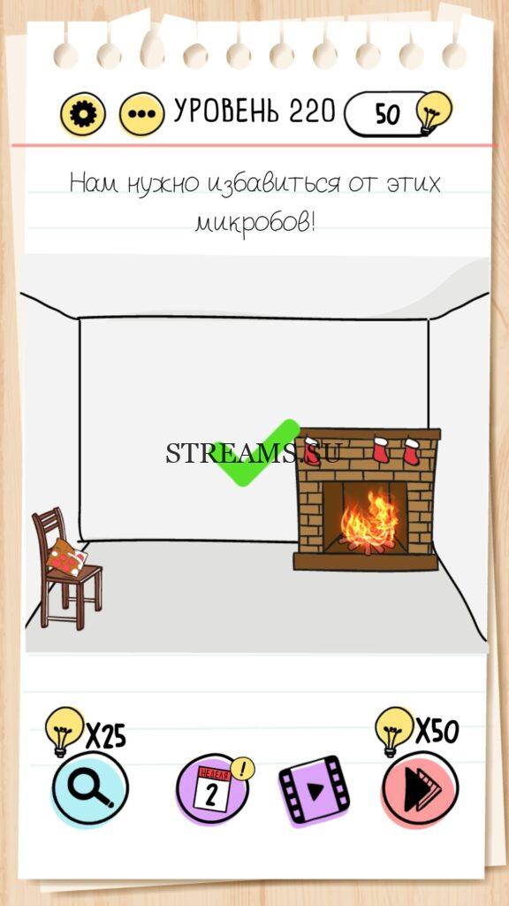 Нам нужно избавиться от этих микробов! Уровень 220 — Brain Test — Это самая популярная головоломка, в которой вам предстоит разгадывать непростые задачки. Нужно будет искать нестандартные решения. Название игры говорит само за себя (Тест мозга). С её помощью вы сможете повысить свой IQ, и интеллект. Иногда ответ может быть очень прост. Вы можете играть в компании друзей или родных. Брейн Тест, это отличный способ провести время с пользой и узнать насколько ты умный. Но если вы не можете решить один или несколько уровней, то воспользуйтесь подсказками с нашего сайта.