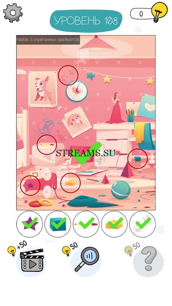 Найди 5 спрятанных предметов. Уровень 108 — Who is? Головоломки и загадки — это уникальная головоломка, с которой не соскучишься! Если вам понравились такие игры как Brain Test и вторая её часть, то вам придется по вкусу и эта игра. С помощью подсказок, которые нам предстоит найти, нужно проходить уровень за уровнем. С каждым уровнем сложность отгадки будет расти. Поэтому приготовьтесь попотеть, чтобы пройти все уровни. Преимущества этой игры в том, что она работает без интернета! Если у вас не получается пройти один из уровней, то не отчаивайтесь. Вы всегда сможете найти ответы к игре Who is? на нашем замечательном сайте!