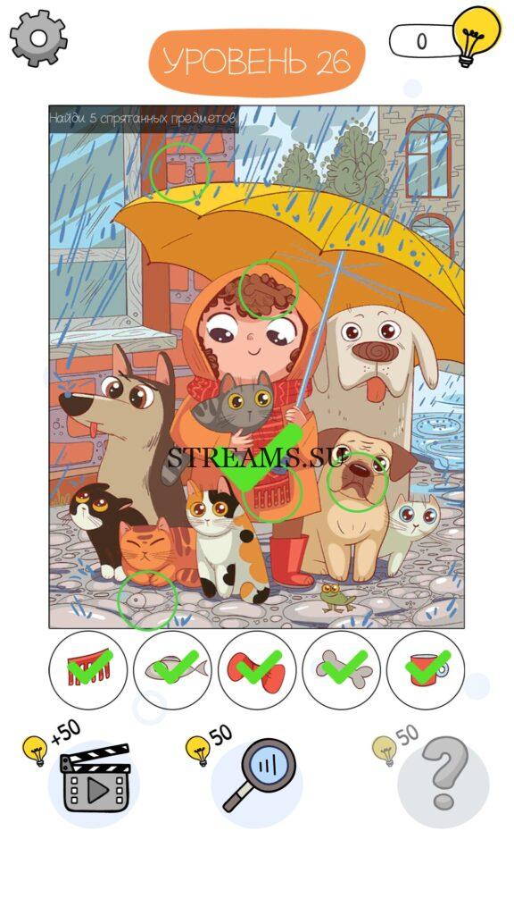 Найди 5 спрятанных предметов. Уровень 26 — Who is? Головоломки и загадки — это уникальная головоломка, с которой не соскучишься! Если вам понравились такие игры как Brain Test и вторая её часть, то вам придется по вкусу и эта игра. С помощью подсказок, которые нам предстоит найти, нужно проходить уровень за уровнем. С каждым уровнем сложность отгадки будет расти. Поэтому приготовьтесь попотеть, чтобы пройти все уровни. Преимущества этой игры в том, что она работает без интернета! Если у вас не получается пройти один из уровней, то не отчаивайтесь. Вы всегда сможете найти ответы к игре Who is? на нашем замечательном сайте!