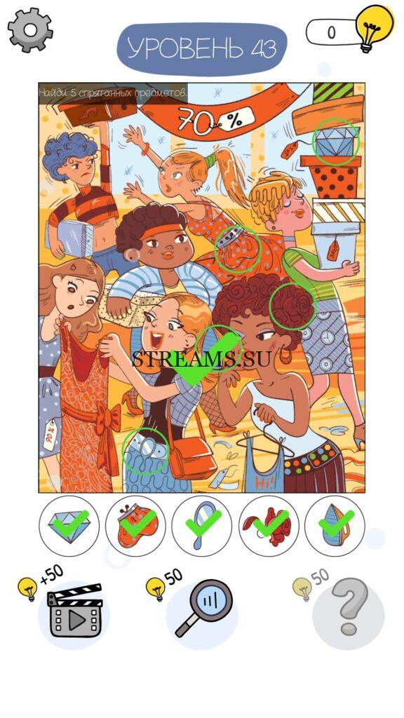 Найди 5 спрятанных предметов. Уровень 43 — Who is? Головоломки и загадки — это уникальная головоломка, с которой не соскучишься! Если вам понравились такие игры как Brain Test и вторая её часть, то вам придется по вкусу и эта игра. С помощью подсказок, которые нам предстоит найти, нужно проходить уровень за уровнем. С каждым уровнем сложность отгадки будет расти. Поэтому приготовьтесь попотеть, чтобы пройти все уровни. Преимущества этой игры в том, что она работает без интернета! Если у вас не получается пройти один из уровней, то не отчаивайтесь. Вы всегда сможете найти ответы к игре Who is? на нашем замечательном сайте!