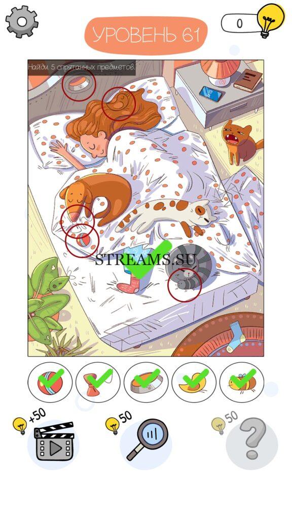 Найди 5 спрятанных предметов. Уровень 61 — Who is? Головоломки и загадки — это уникальная головоломка, с которой не соскучишься! Если вам понравились такие игры как Brain Test и вторая её часть, то вам придется по вкусу и эта игра. С помощью подсказок, которые нам предстоит найти, нужно проходить уровень за уровнем. С каждым уровнем сложность отгадки будет расти. Поэтому приготовьтесь попотеть, чтобы пройти все уровни. Преимущества этой игры в том, что она работает без интернета! Если у вас не получается пройти один из уровней, то не отчаивайтесь. Вы всегда сможете найти ответы к игре Who is? на нашем замечательном сайте!