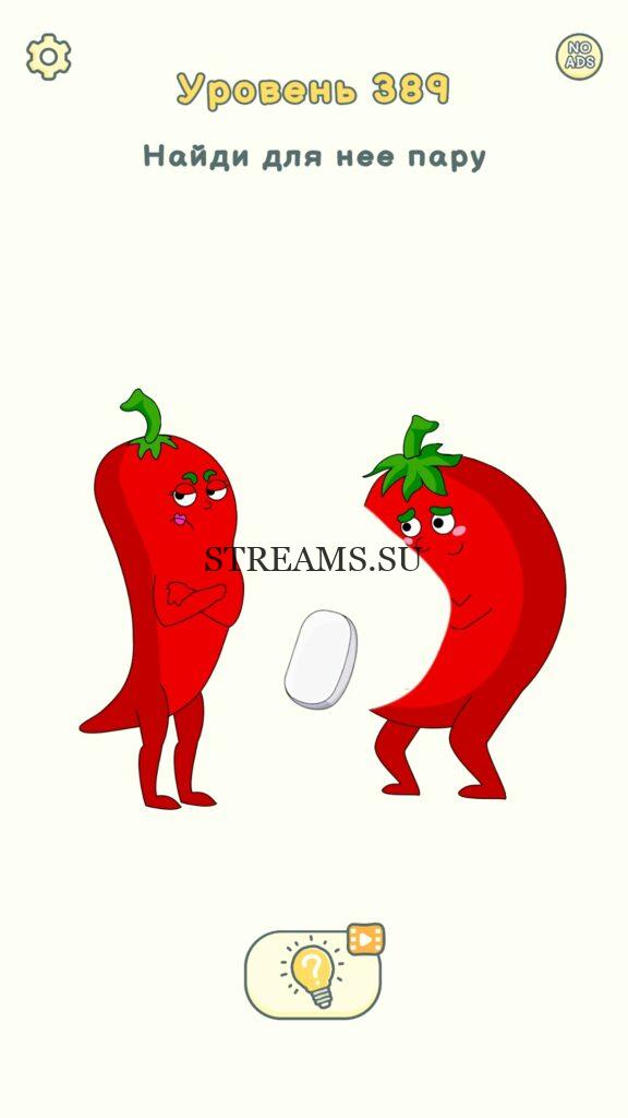 Найди для неё пару. Уровень 389 — DOP 2: Delete One Part. Вы готовы к продолжению первой части игры? Тогда вперед! Эта игра DOP 2 (Расшифровка: Delete One Part) , которая отличается от первой части тем, что здесь нам нужно будет не дорисовывать предметы, а удалять или стирать их. Вас ждет множество хитроумных и интересных уровней. На первом этапе нам будут подсказывать, что нужно удали, но потом становится всё тяжелее и тяжелее решать головоломки. Разработчики постарались сделать игру привлекательной. Геймплей заставит вас просидеть за игрой очень долго. Красивая графика исполнения. Тренировка мозга и многое другое, всё это ждет нас в замечательной головоломке DOP 2. Если не получается пройти уровень, или зашли в тупик, то вы можете найти ответ на любой уровень на нашем сайте STREAMS.SU! Ответ на этот уровень находиться чуть ниже..