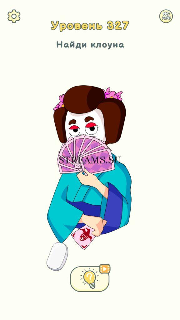 Найди клоуна. Уровень 327 — DOP 2: Delete One Part. Вы готовы к продолжению первой части игры? Тогда вперед! Эта игра DOP 2 (Расшифровка: Delete One Part) , которая отличается от первой части тем, что здесь нам нужно будет не дорисовывать предметы, а удалять или стирать их. Вас ждет множество хитроумных и интересных уровней. На первом этапе нам будут подсказывать, что нужно удали, но потом становится всё тяжелее и тяжелее решать головоломки. Разработчики постарались сделать игру привлекательной. Геймплей заставит вас просидеть за игрой очень долго. Красивая графика исполнения. Тренировка мозга и многое другое, всё это ждет нас в замечательной головоломке DOP 2. Если не получается пройти уровень, или зашли в тупик, то вы можете найти ответ на любой уровень на нашем сайте STREAMS.SU! Ответ на этот уровень находиться чуть ниже..