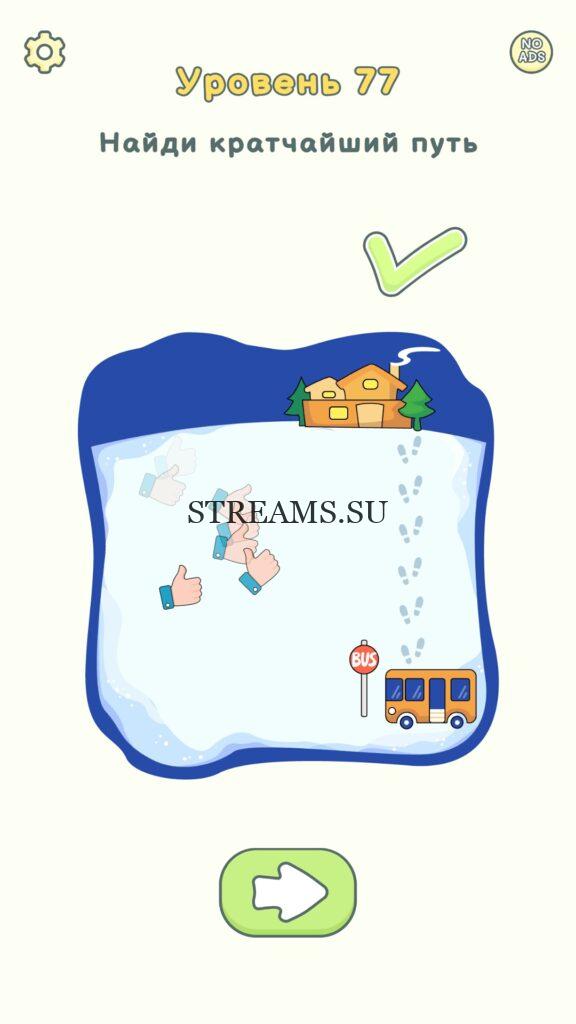 Найди кратчайший путь. Уровень 77 — DOP 2: Delete One Part. Вы готовы к продолжению первой части игры? Тогда вперед! Эта игра DOP 2 (Расшифровка: Delete One Part) , которая отличается от первой части тем, что здесь нам нужно будет не дорисовывать предметы, а удалять или стирать их. Вас ждет множество хитроумных и интересных уровней. На первом этапе нам будут подсказывать, что нужно удали, но потом становится всё тяжелее и тяжелее решать головоломки. Разработчики постарались сделать игру привлекательной. Геймплей заставит вас просидеть за игрой очень долго. Красивая графика исполнения. Тренировка мозга и многое другое, всё это ждет нас в замечательной головоломке DOP 2. Если не получается пройти уровень, или зашли в тупик, то вы можете найти ответ на любой уровень на нашем сайте STREAMS.SU! Ответ на этот уровень находиться чуть ниже..